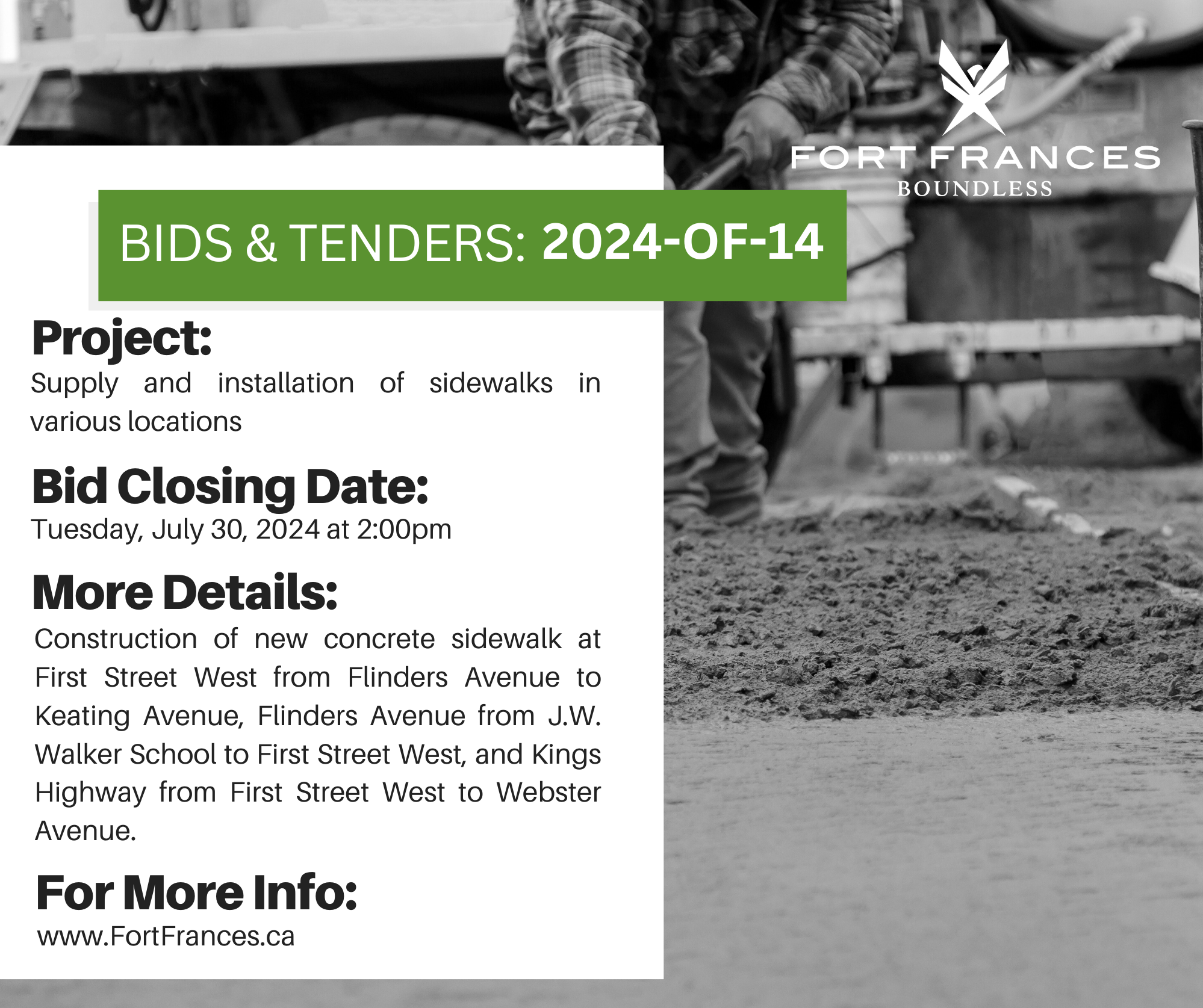 Tender 2024-OF-14 - Supply and Installation of Sidewalks in Various Locations