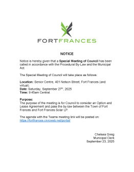 Public Notice: Notice of Special Meeting - September 27 2025