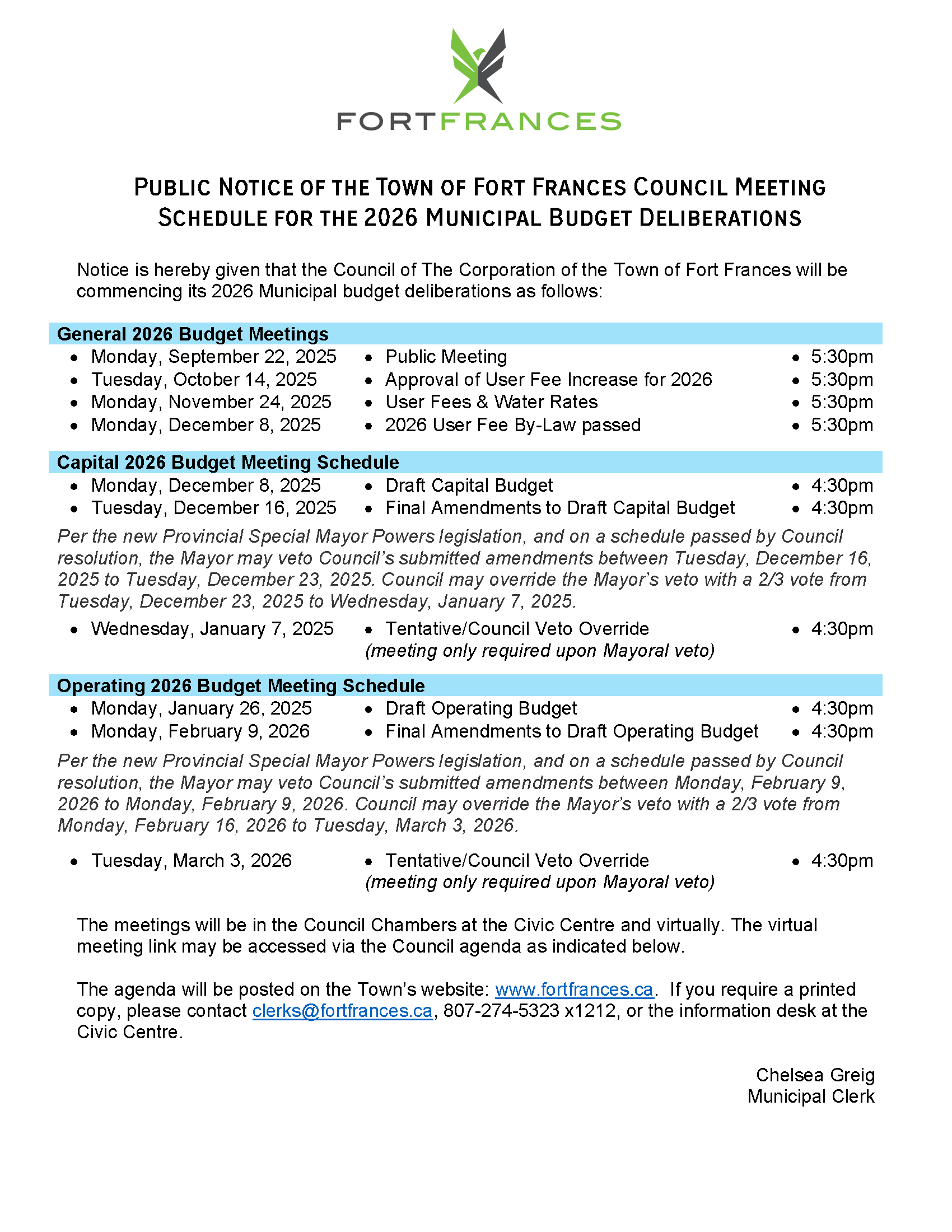 2026 Budget Schedule